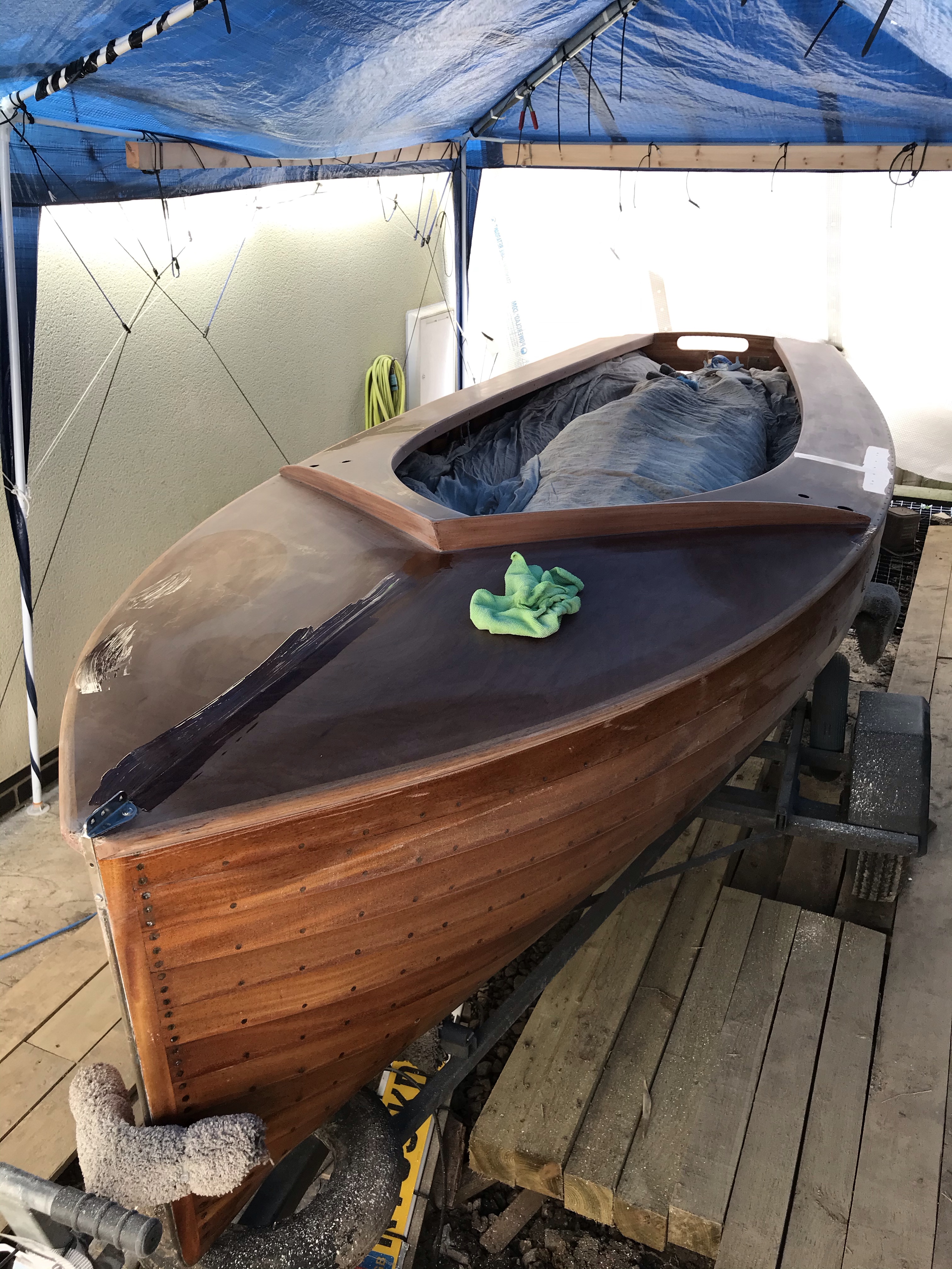 I have now grooved the joins in the ply and epoxied them along with other small abused areas that I found. This is all rubbed down ready for varnish.